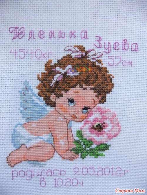 набор Алиса, размер не помню, нитки гамма, изменила цвет волос и цвет цветочка, подарю двум чудесным мамочкам, как только оформлю