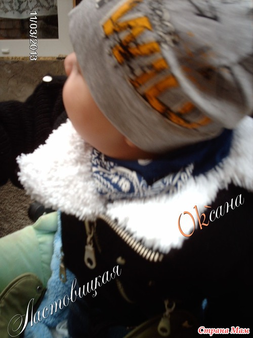 Воротничек я решила сделать"меховый" - во-первых он оттеняет черный ( как-то маленькому ребеночку не айс чисто черное), во-вторых мягче в шейку и никакая змейка нигде не будет давить, а они довольно толстые и еще и металлические.. А еще мы у нашего старшего братца Никиты сперли бандану себе на шейку