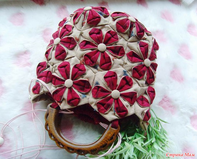 Пришиваем к сумке подкладку. Обратите внимания, что подкладка из той же ткани, что и цветная на сегментах цветов...