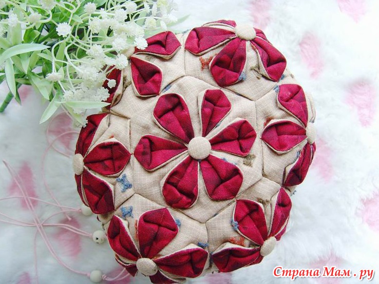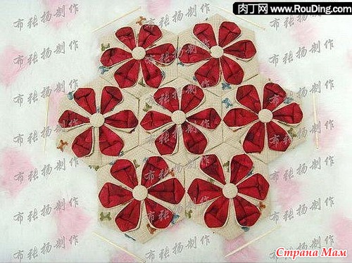 Сверху закрываем цветным шестиугольником и сшиваем два больших вместе...