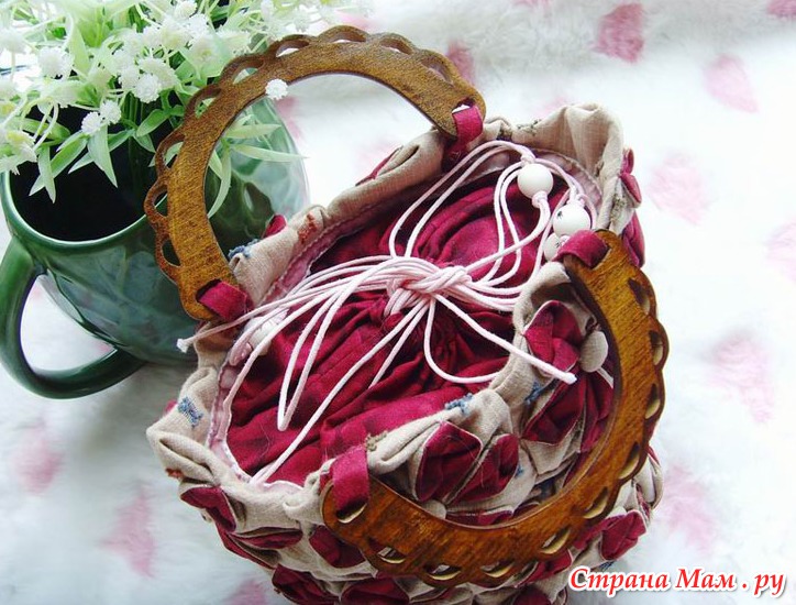 Далее нам понадобятся деревянные ручки. Такие можно взять от старой ненужной сумки, купить (в нетмагазинах полно вариантов), а еще можно придумать свой вариант, не обязательно из дерева, можно из ткани, кожи и т. д.