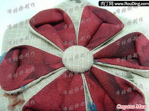 Затем в середину пришиваем большую красивую бусину, либо можно пуговицу обшить тканью...