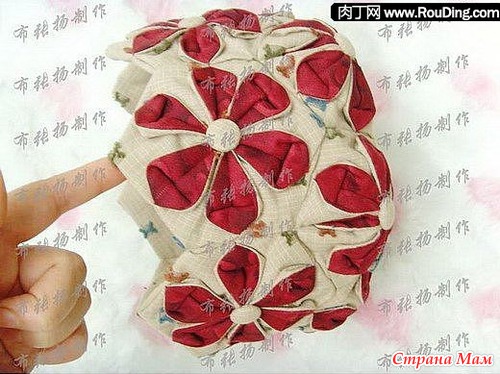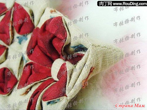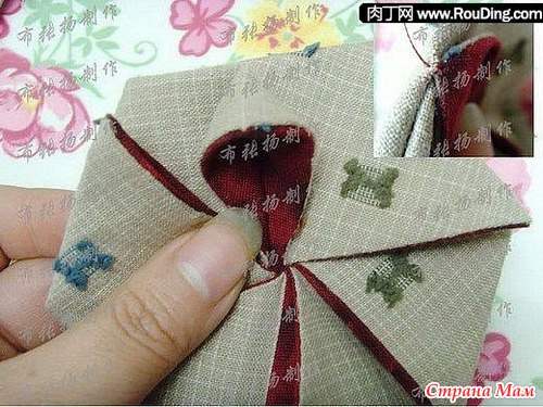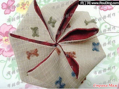 Далее расправляем каждый лепесток изнутри и пришиваем его вершину к нижней ткани