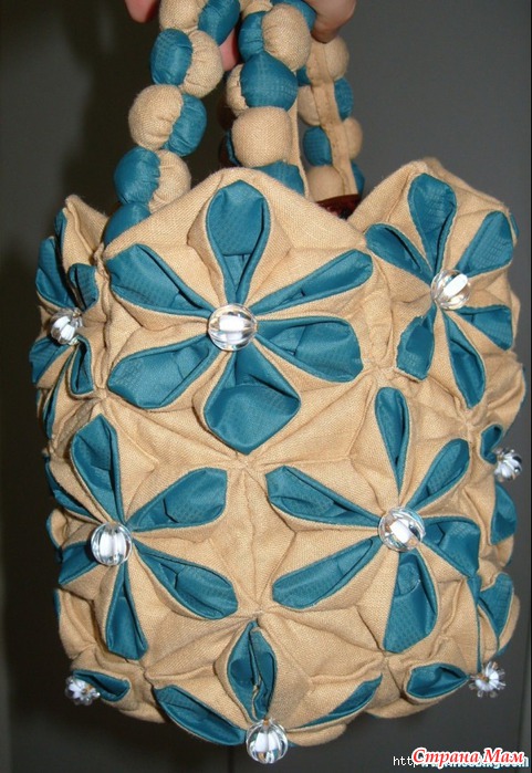 Пришиваем к ручкам цветную ткань... Вшиваем ручки к сумке...