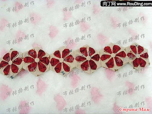 Деталь для цветка состоит из двух частей, цветной и однотонной... Сшиваем эти ткани вместе и складываем из них оригами..
