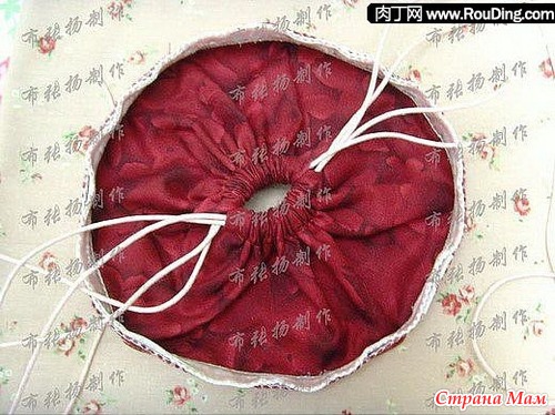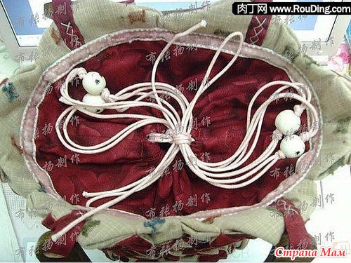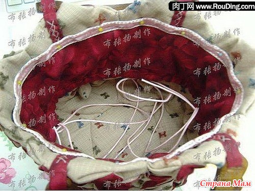 Подкладку, естественно, нужно подготовить заранее и сделать кулиску, в которую просунем красивый шнурок, которым можно будет стягивать подкладку и тем самым закрывать сумку... Подкладку пришить вниз, чтобы при ненадобности можно было ее просто спрятать в сумке...