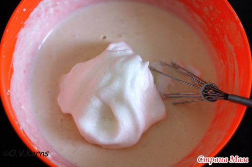 Взбейте белки со щепоткой соли в пышную пену. Аккуратно вмешайте в тесто венчиком.