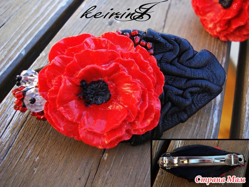 . Bот такой мак получился из одного из них.Браслет и заколка. Подложка для заколки и внутренняя сторона браслета отделана натуральной кожей.