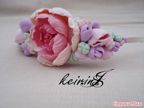 А после яркого оттенка потянуло на нежность и вот получилось что, заколка о ободок.