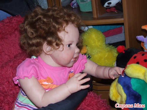 Моя новая работа. Малышка Луиза готовится к фотосессии Красивое платье и рыжие кудряшки и можно позировать. Лу куклёна не маленькая 65см. росту и 3 кг. вес Коляску для фото пришлось одолжить у соседской девчушки. Читать полностью