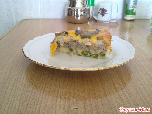 сверху заливаем тестом. в разогретую духовку на 40 минут при температуре 175 градусов. перед подачей на стол переворачиваем из формы для выпечки в блюдо для подачи.