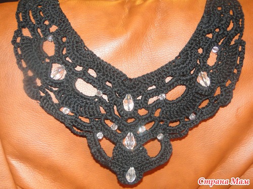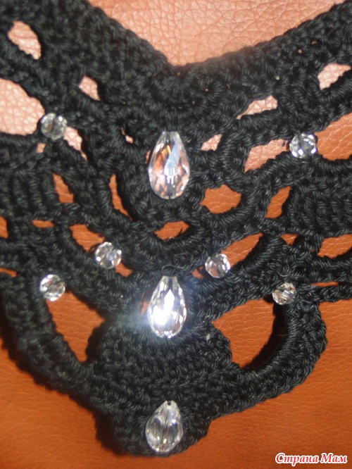Не переживайте - дневник и не собиралась закрывать)))Носить думаю как ожерелье, если декольте глубокое, и как воротник, когда вещь с небольшим вырезом "под горло")))а по краям 2 ленточки присобачила)))буду учиться завязывать красивый бантик)))