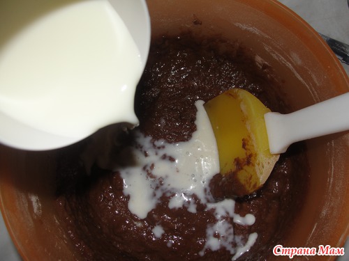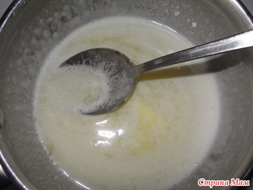 Влить помешивая молоко.