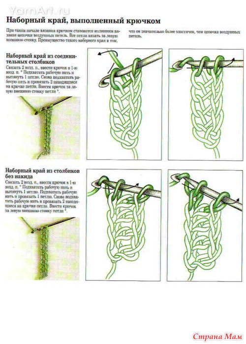 Для начала набрала 100п(раппорт - 4 петли) эластичным способом(1-ый способ), потом ряд ст. без накида и далее по схемам