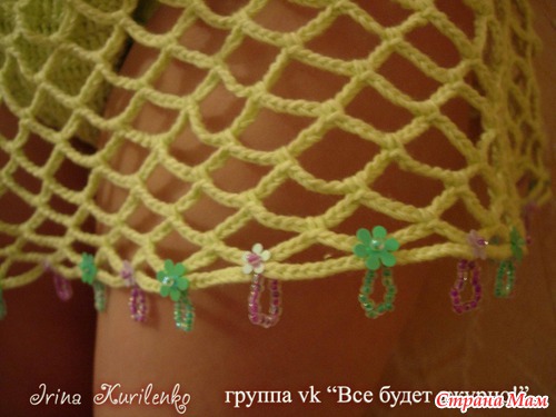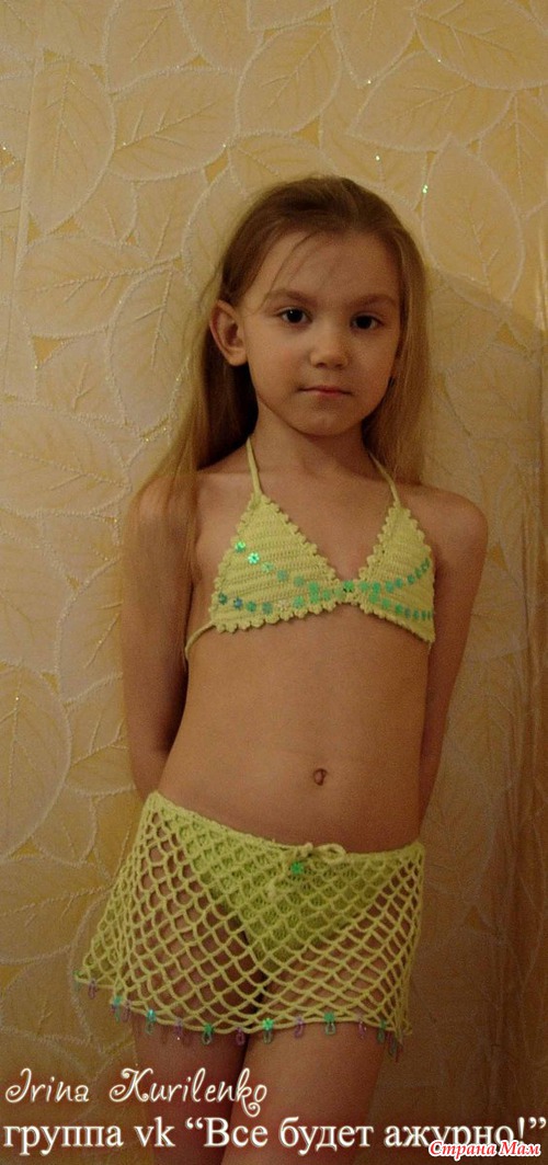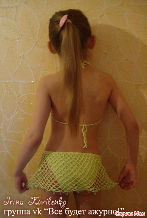 Попробую Лиф-это два треугольничка, связанные столбиками с накидом, прямыми и обратными рядами. Обвязка - цветочной каймой, наберите в яндексе, она не редкость. А вот плавочки вязала по принципу взрослых, постоянно примеряясь к образцу (взяла самые удобные для модельки труселя и прикладывала к ним). Когда перед и зад связался, то соединила их по бокам цепочками из возд.пет. Сделала чуть пошире, чем надо было, чтобы одевались легко. Провязала ряда 3 по кругу столбиками с накидом. А потом начала юбку-сетку. С ней вообще все просто! Прикрепилась сбоку и по кругу начала вязать. Прибавления в возд.пет.делала на глаз, чтоб лежало красиво. Когда сделала нужной длины, то связала шнурок и пропустила по верху, чтобы обхват талии регулировать. Ну и украшательства добавила. Вот и весь процесс Наверно, немного сумбурно получилось. Но из меня объясняльщик..... Лучше пишите лс, как соберетесь вязать, чем смогу - помогу, с радостью