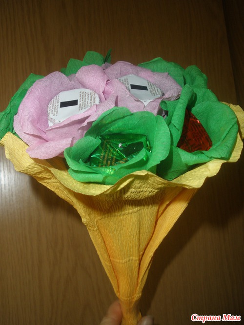 Глядя на меня дочка тоже захотела сделать конфетный букет и вот что у нее получилось!