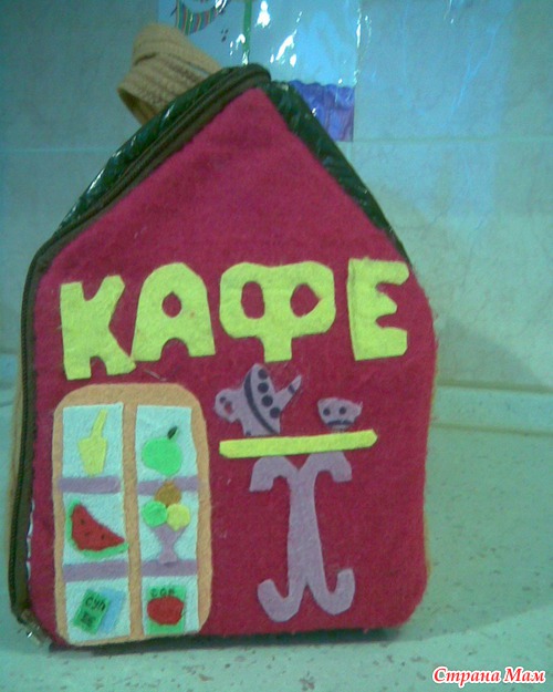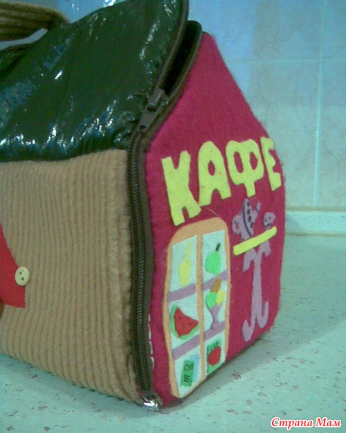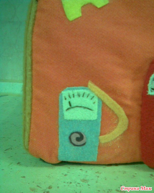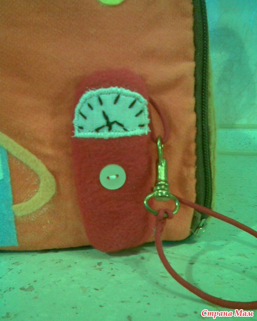Это вид сумки спереди, со стороны застежки-"ворот", на воротах аппликация машины