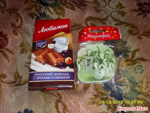 А на єто муж сказал так:"Тебе магнитик а мне шоколад!"И все шоколадки не стало!!