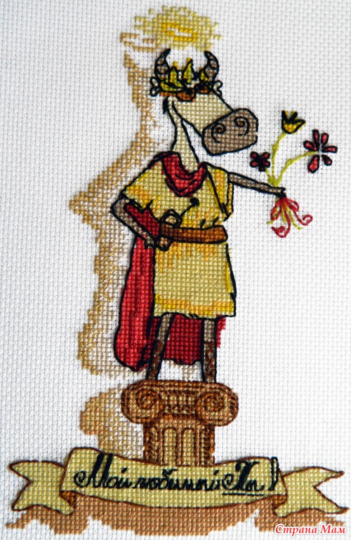Мой муж все переживает - почему это у девочки есть крылышки, а у бычка нет. Мои доводы, что бычок стоит на пьедестале, а Буренка на скромном стульчике - его не убедили. Все равно отсутствие крыльев считает ужасной несправедливостью.