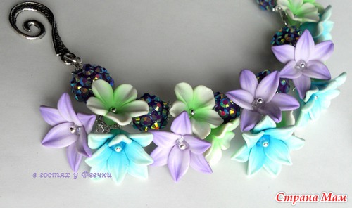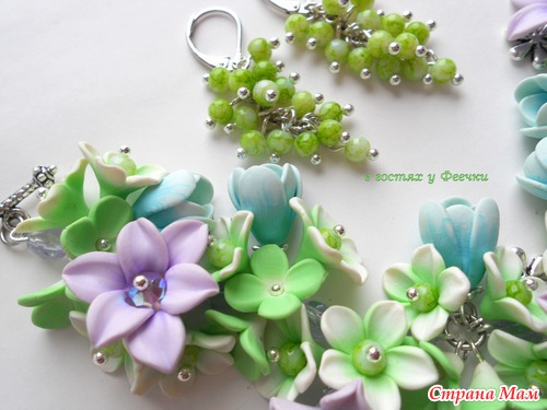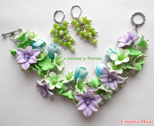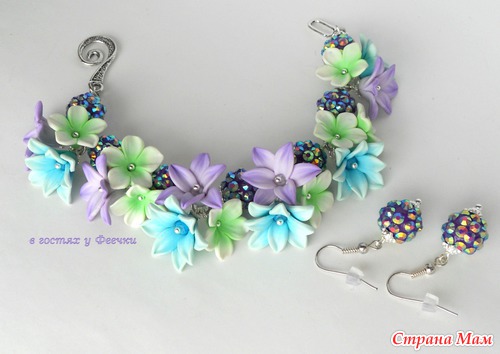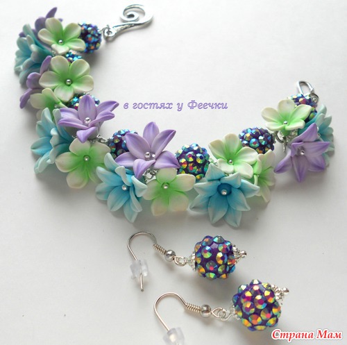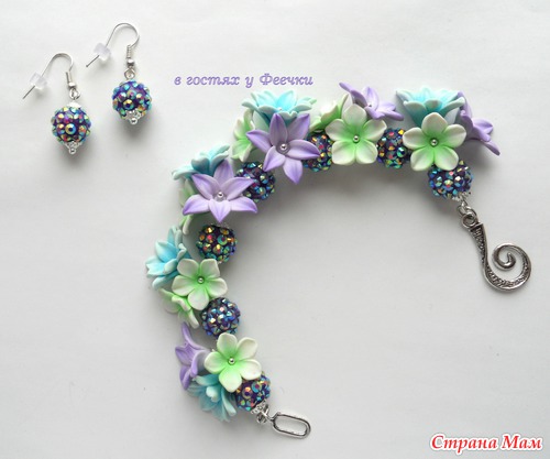 Браслет и серьги с нежными цветами и бусинами Шамбала.