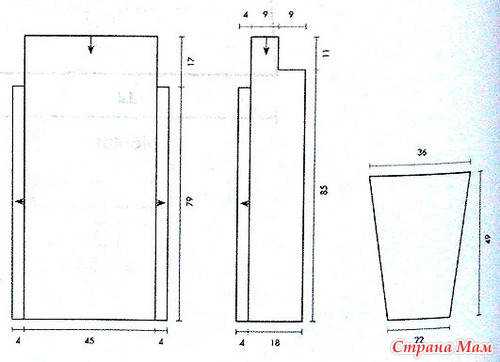 Рукава: выполнить цепочку из 65 в. п., начиная с 8-й п. вяз. филейной сеткой, с обеих стор. приб. в каждом 3-м р. 12 раз по половине квадрата. На высоте 49 см от нач. работы обрезать и закрепить нить.