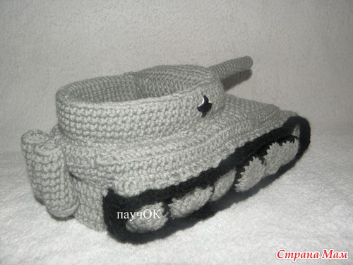 много ссылок с различными бесплатными МК по танкам (хотя моего "Тигра" там к сожалению нет). Почитайте внимательно комменты - может кому что и приглянется (я несколько идей - как присоеденять дуло и что принцип готового танка - сшивать все детали, подсмотрела из этих МК - до этого собиралась каким-то чудом все монолитно вывязывать)