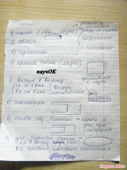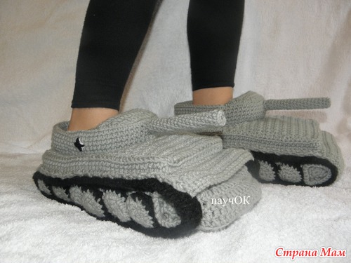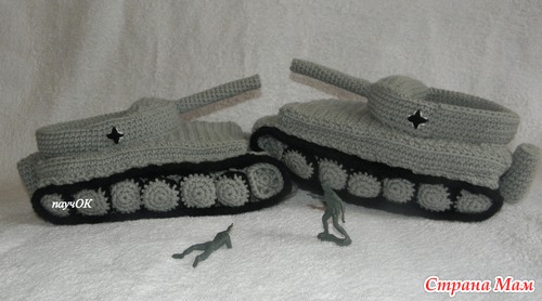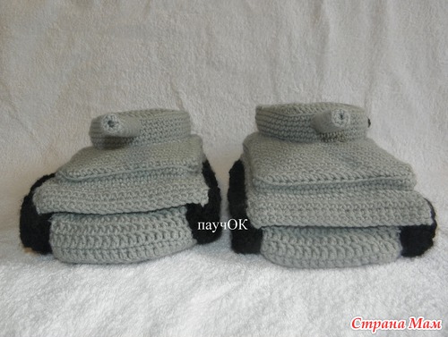 Совет - 1. вяжите паралленько оба танка сразу - подошва на правую и на левую, потом переходите к след детали.