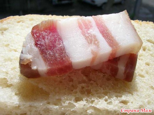 ): отрезаем кусочек по всей толщине вместе со шкуркой - сверху сало
