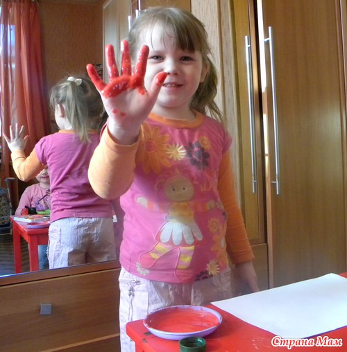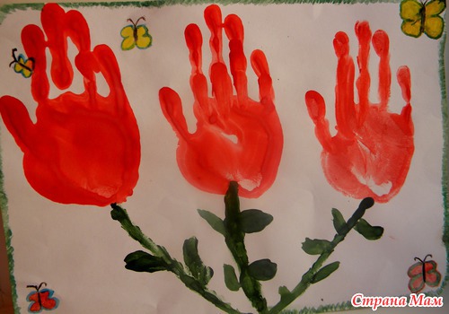 Для этой открытки понадобятся детские ладошки