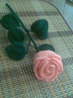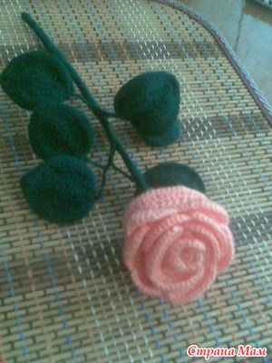 Для стебля я использовала жесткую проволоку, которую плотно обмотала зеленой нитью, поочередно прикручивая веточки с листьями. По краю листиков при обвязке рачьим шагом добавляла тонкую проволоку.