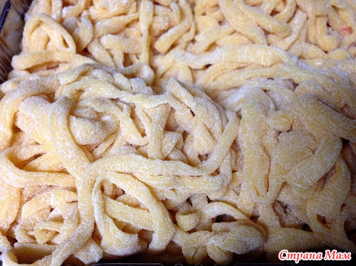 Сегодня делала очень вкусную домашнюю лапшу. поделюсь и с вами рецептиком. Более подробно на моей страничке https://www.stranamam.ru/post/5194921/