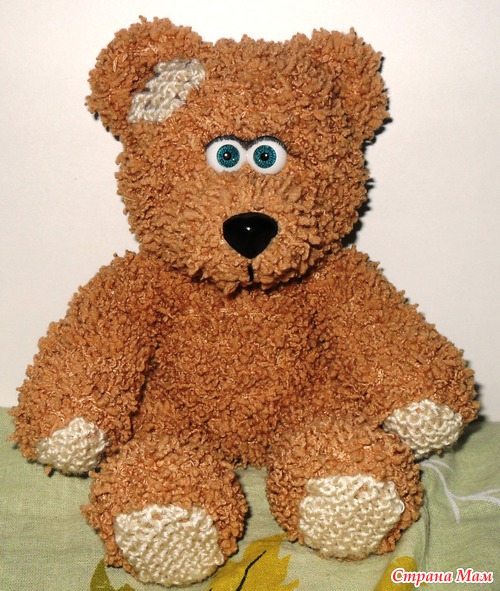 Дорогие девочки, представляю вам на суд мою первую спицевую игрушку. Спасибо Леночке за подробное описание, связала быстро. Размер 25 см стоя, вязала из пряжи кроха, ушло чуть больше моточка. Ссылка на описание для тех, кому интересно http://knittedtoys.ru/bear-Plush.html