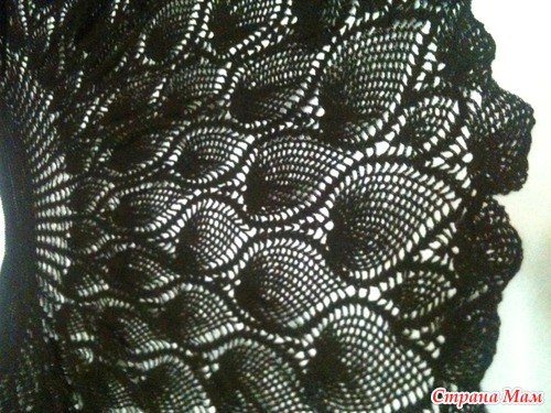 Вся юбка к сожалению не входит сфотографировать. Но есть на последнем фото - это край (окончание) работы. Я просто ананас не до конца довязала. Вообще предполагалось на середине ананаса каждый довязывать отдельно. Это это мне не понравилось. (я связала ананасов пять и распустила). Мне кажется так лучше смотрится. Каждый ананас увеличивала по количеству арок. Поэтому юбка получилась такой пышной. Сама себе хочу такую, но как-то пока не решусь