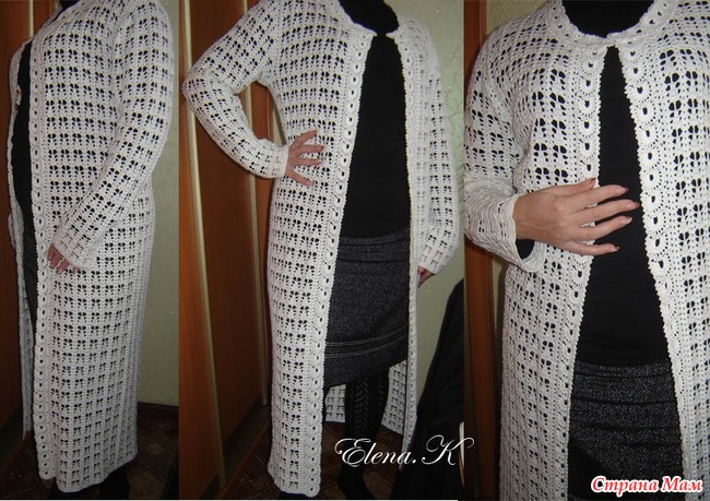 Очередной кардиган для себя любимой! Связан из хлопка "Ирис". Пришлось клиентку нарядить, чтоб сфотографировать, правда немного не по размеру, думаю ничего страшного. Отделка - ленточное кружево. Читать полностью