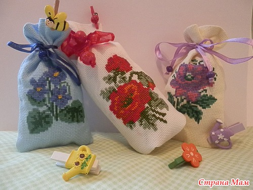Мешочек вышит вручную, техника счетный крест.