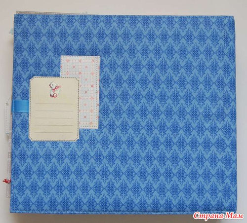 Обложка, как полагается, тканевая, проложена синтепоном, завязывается альбом на атласные ленты.