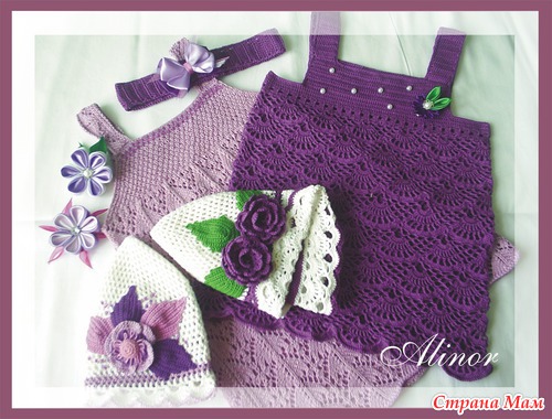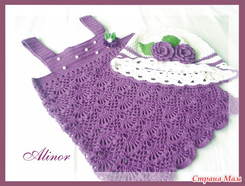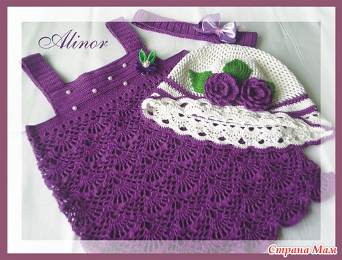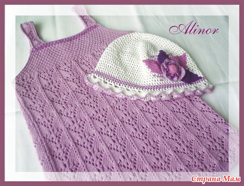 А этот сарафан у нас уже был, вязала его прошлым летом. Оказался он очень удобным и комфортным. И до сих пор в пору. Поэтому решила связать к нему тоже панамочку.