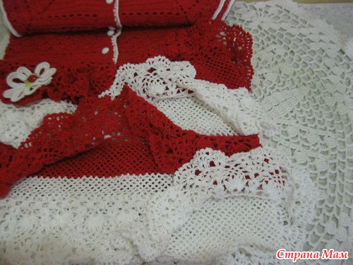 Вот и я не смогла в магазине отказаться от этих красивых красных ниточек, хотя мне их явно не хватало. Немного и не хватило, на 6 рядов красной сеточки.