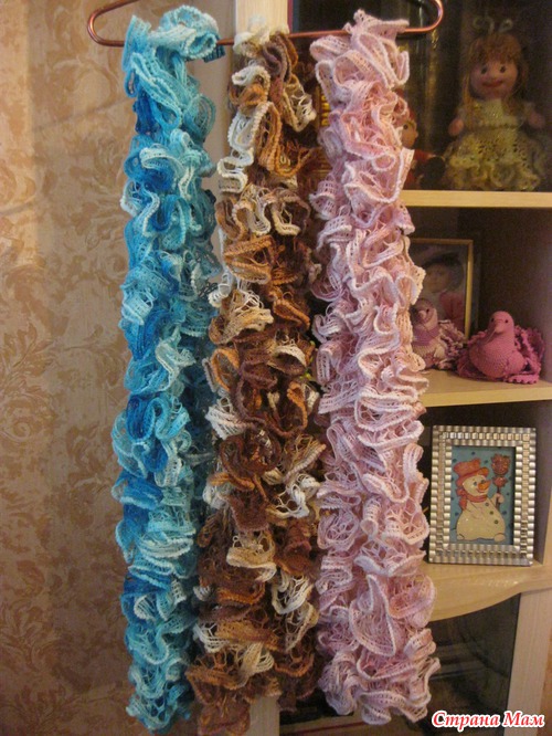 А эти шарфики, я считаю, именно плетутся, а не вяжутся. Пряжа-то ленточная.