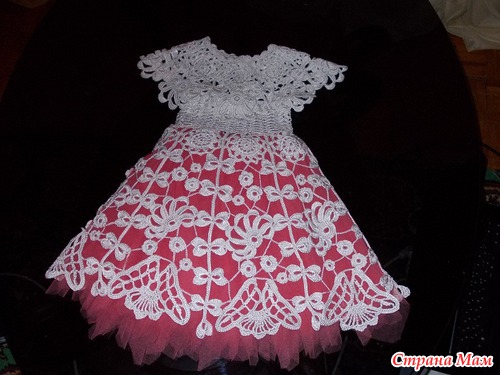 Вот такое платье можно связать своим маленьким принцессам! добавляю схемки которые использованы! единственное, что колокольчик внизу вязала из 2х лепестков, и между ними делала узорчик, взят из журнала "Дуплет"! требует конечно время, но думаю стоит посидеть по вязать, чтобы ваши дочи были самые-самые!!!