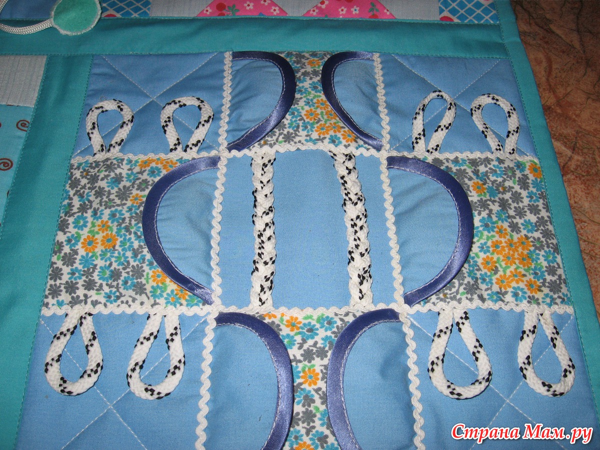 ... мешочки с рисом, целлофаном, косички петельки- их трогаем, дергаем...