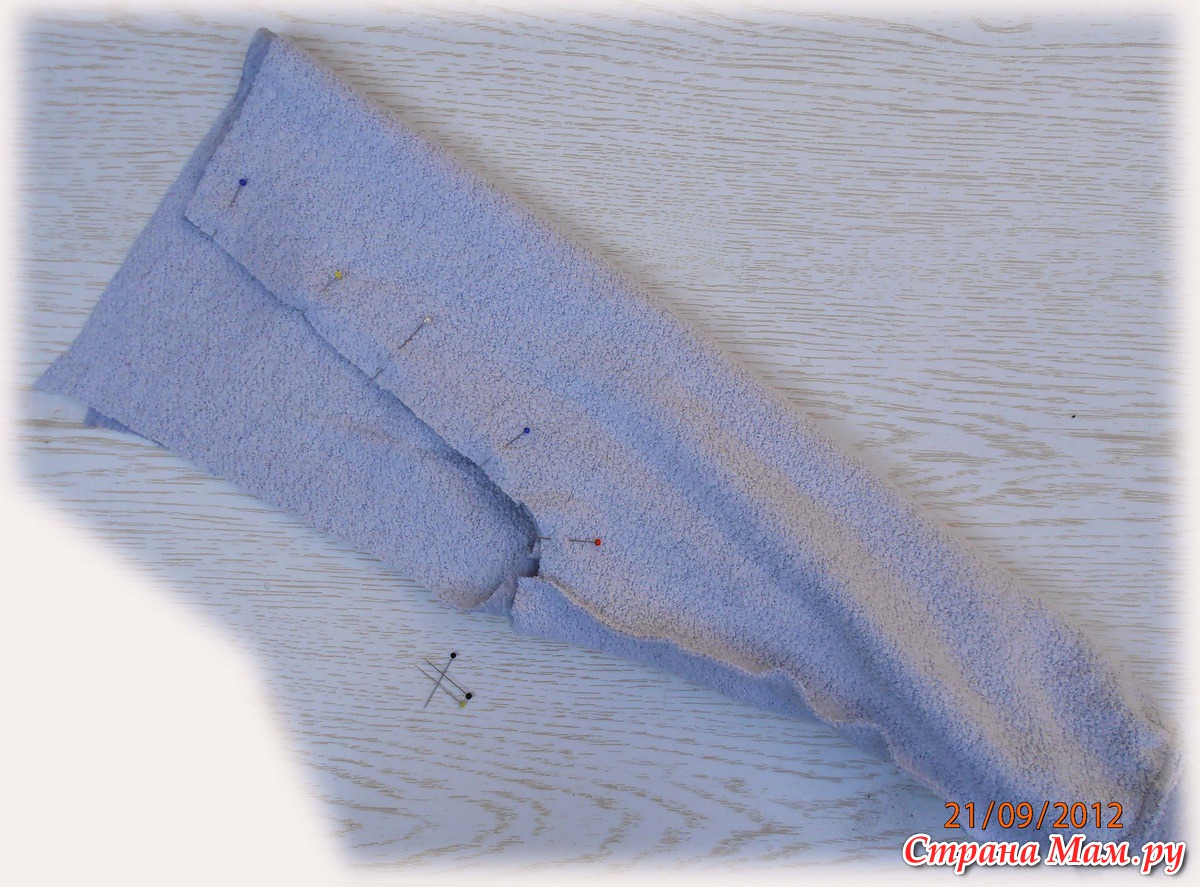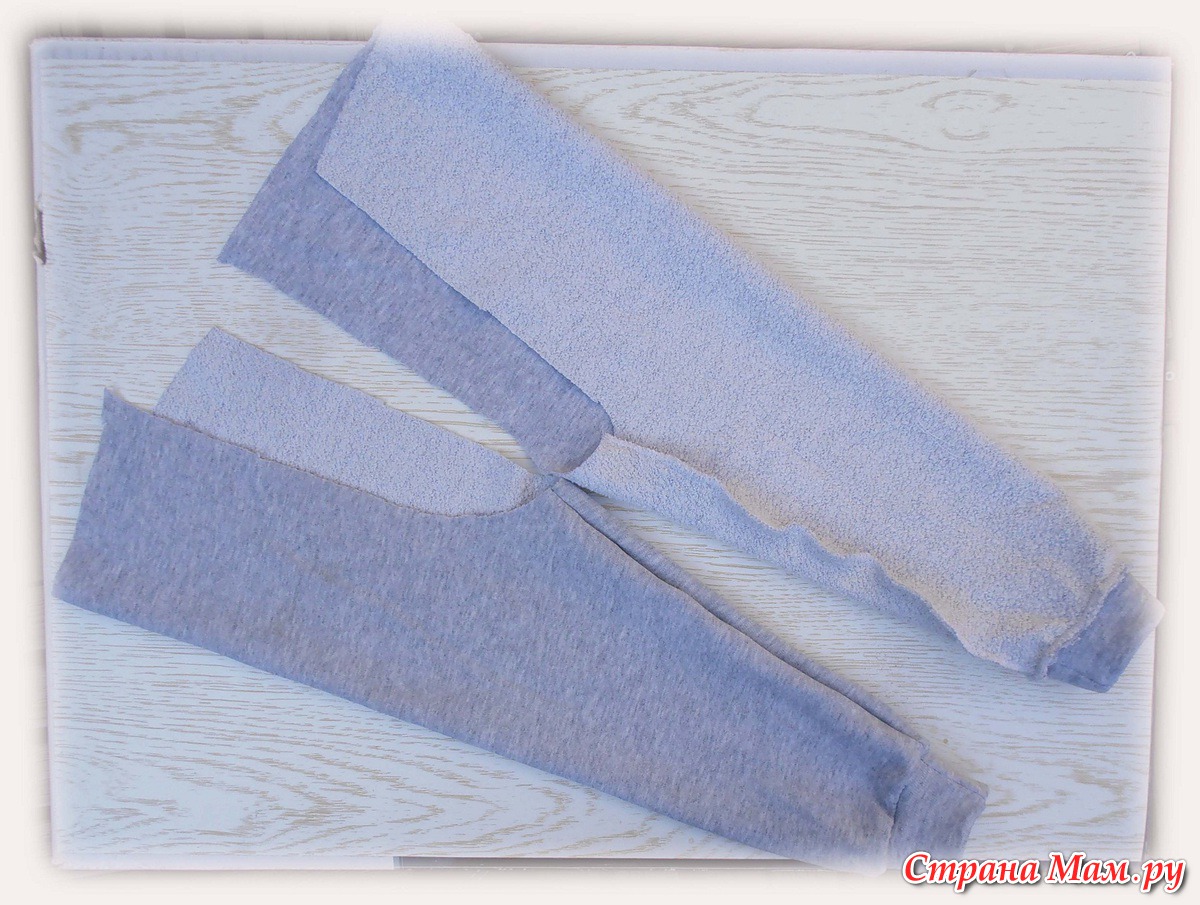 Вставляем одну штанину в другую, лицевыми сторонами вместе.