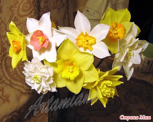 В этот раз я училась лепить нарциссы. Вот, что получилось: