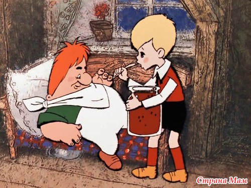 Вопреки советскому мультфильму, в книге нигде не упомянуто, что самая любимая еда Карлсона — варенье. Согласно книге, самые любимые блюда Карлсона — мясные тефтели и торт со взбитыми сливками.