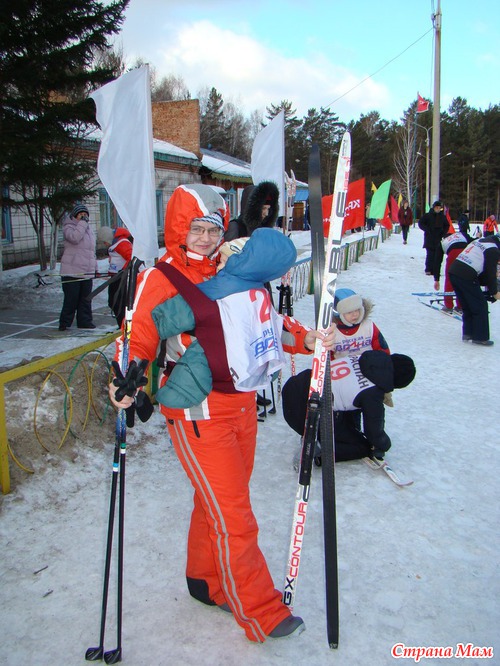 А было все так:Мы с сыном перед тренировочным заездом. Арсюша еще не спит, глазеет, все вокруг разглядывает...