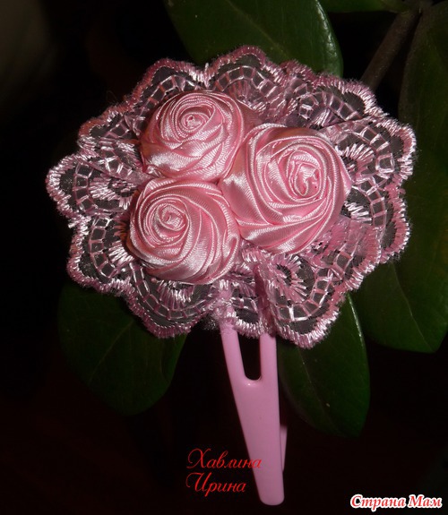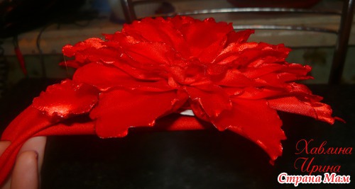Своей малышке, сделала за 1,5 часа вместе с нарезкой лент (это для меня быстро), поэтому лепесточки кривоватенькие