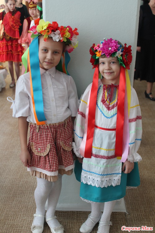 Очень уж мне этот венок нравился... Всё любовалась на наших рукодельниц-какая красота!!!... но думала -долго его делать да и незачем вроде... А тут вдруг дочери в школу на выступление понадобился, а у знакомых не нашли на прокат-вот пришлось в срочном порядке за 1 день и костюм сшить, и венок смастерить. Хорошо что 4 цветочка самые большие уже в запасе были-пришлось резинки от маков и подсолнуха оторвать-но зато результат порадовал!