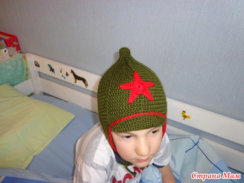 Для сына связалась буденовка. Несколько дней назад подсмотрел он у меня в СМ похвастушечку, дня два не давал мне покоя, пока не купили нитки. Камтекс соната 250м\100г. Вязала крючком 2,5 ушло больше приблизительно 130 г. Шапка получилась двойная, на раннюю весну, так что завтра выгуливать пойдем.