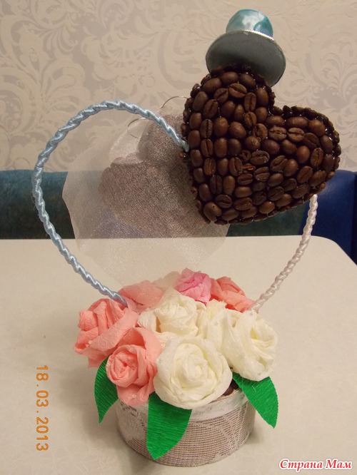 Всем доброго дня суток. Рада, что заглянули в мою скромную обитель. На днях я загорелась новым видом творчества, и мне понравилось. То, что у меня получилось я вам сейчас покажу. Только попрошу, ответьте честно, получилось или нет? Над чем мне ещё работать ( я так понимаю работать мне есть над чем, ведь это мой первый "блин" ), очень надеюсь на вашу искренность. И ещё, я свой топиарий сделала в подарок на свадьбу племяннице, не слишком страшненько? Ещё раз спасибо, что заглянули и черкнули пару слов. А вот собственно и мой, точнее мои "топиарии"