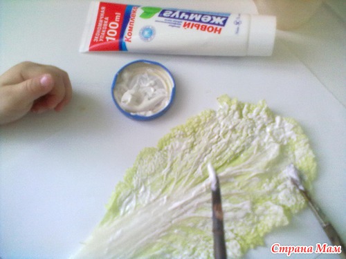 На другой лист капусты нанесли просто зубную пасту
